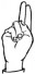 На ћирилици написано БЛАЖА КОМЛЕНИЋ састоји се из 13 слова [?]. Исписано ћириличном једноручном азбуком за глувонеме: